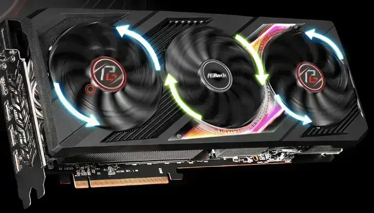 The center fan spins reversely to lower turbulence and enhance air dispersion through the heatsink.