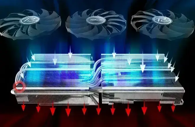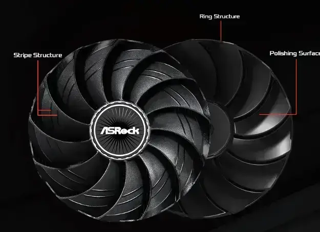ASRock’s all new Striped Ring Fan get more lateral intake and to provide better airflow through the cooling array.