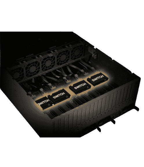 This server features the latest Broadcom PEX8900 series of switches, supporting up to 1,024 Gbps (128 GBps) of raw bandwidth per port (x16) to create high-availability hyper-scale systems. It uses the PCI Express® 5.0 bus to empower communication between in-rack hosts and endpoints, simplifying connectivity while providing the highest PCIe switching performance available for data center servers, storage and networks. Take advantage of these industry-first features today for the most demanding hyper-converged AI/ML/DL applications.