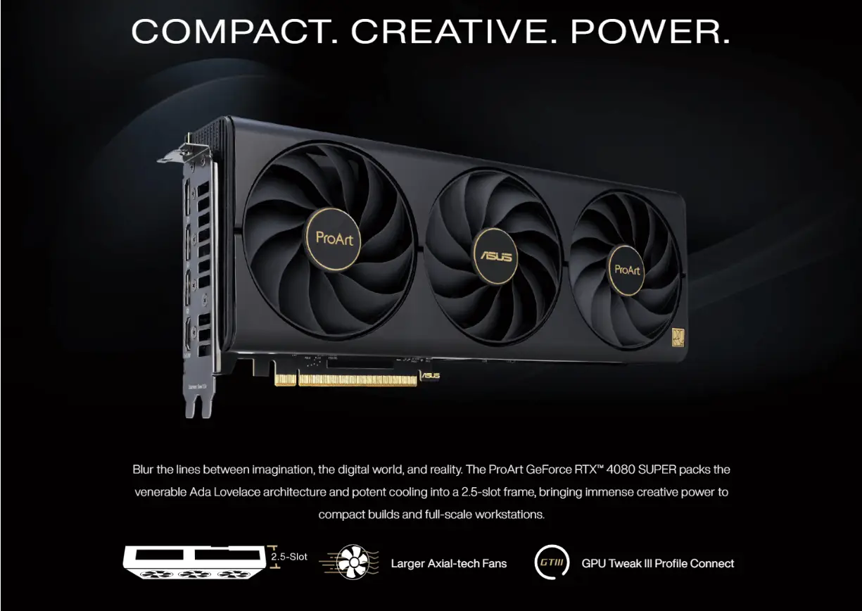 ✓ Model: PROART-RTX4080S-O16G, featuring NVIDIA® GeForce RTX™ 4080 SUPER
