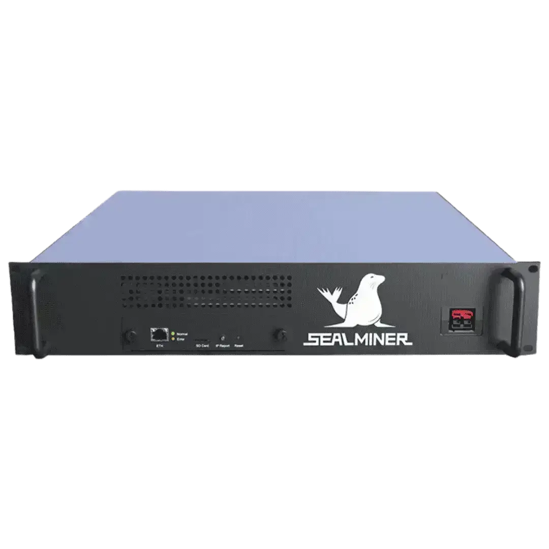 Introducing the SEALMINER A2 Hyd 2U format (rack mountable) mining rig, designed to revolutionize the Bitcoin mining landscape! With an impressive hashrate of 446 TH/s and an energy efficiency ratio of just 16.5 J/TH, SEALMINER A2Hyd delivers powerful performance while optimizing energy use.