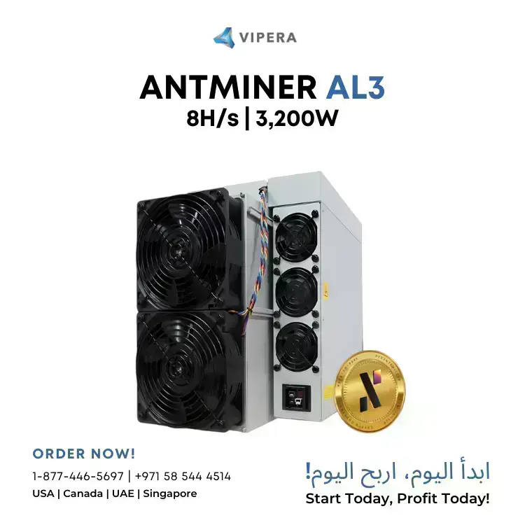 Bitmain, the renowned manufacturer in the cryptocurrency mining industry, unveils its newest offering, the Antminer AL3. Engineered to dominate the mining scene, the Antminer AL3 supports the Alephium (ALPH) algorithm, boasting an impressive hash rate of 8 TH/s while maintaining a power consumption of 3200W. With dimensions measuring 195 x 290 x 430 mm and a weight of 14.2 kg, this powerhouse is designed for efficiency and performance. Equipped with a power supply unit and emitting an operating noise level of 75 dB, the Antminer AL3 ensures a seamless mining experience. Scheduled for release in May 2024, it promises to elevate your mining operations to new heights.