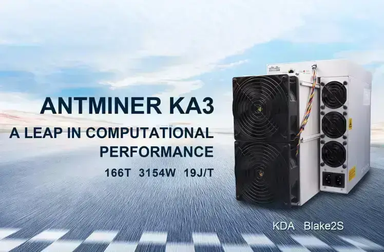 Bitmain Antminer KA3 (173Th) mining the lucrative Kadena (Blake2s) algorithm with a maximum hashrate of 173Th/s for a power consumption of 3154W.