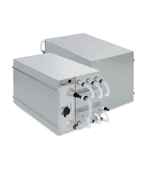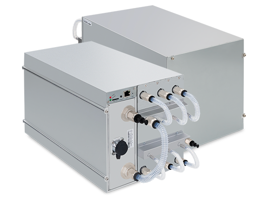 Revolutionary 5nm chip of the S19 XP has been implemented in the latest generation of Hydro ASIC from Bitmain, mining the SHA-256 algorithm with a maximum hashrate of 257Th/s for a power consumption of 5,304W continuous draw.