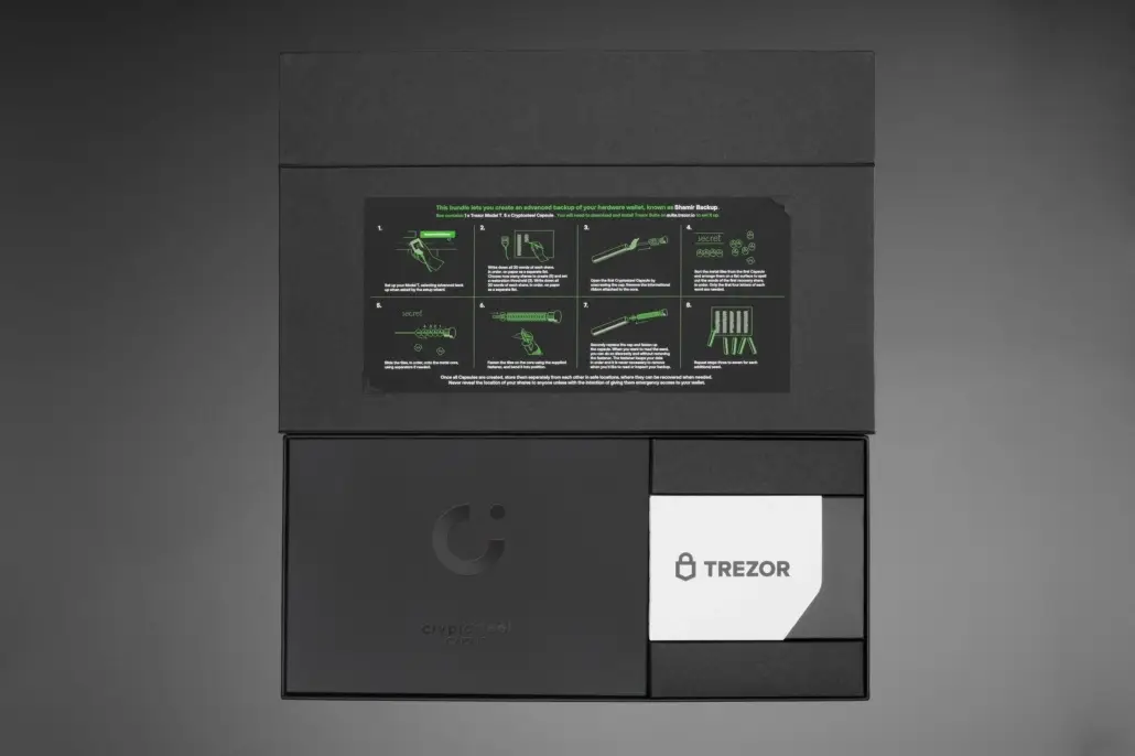 The ultimate gift set for crypto beginners and experts alike! Includes five Cryptosteel Capsules packed and the Trezor Model T hardware cryptocurrency wallet in an exclusive clamshell box, all made in Europe. The Cryptosteel Capsule is the leading seed backup device protecting against memory device failure, loss or damage by natural elements. Paired with the groundbreaking Shamir’s Secret Sharing (SSS) system and the Model T hardware wallet by our official partner Trezor, the HODL Pack is the definitive seed backup combo!