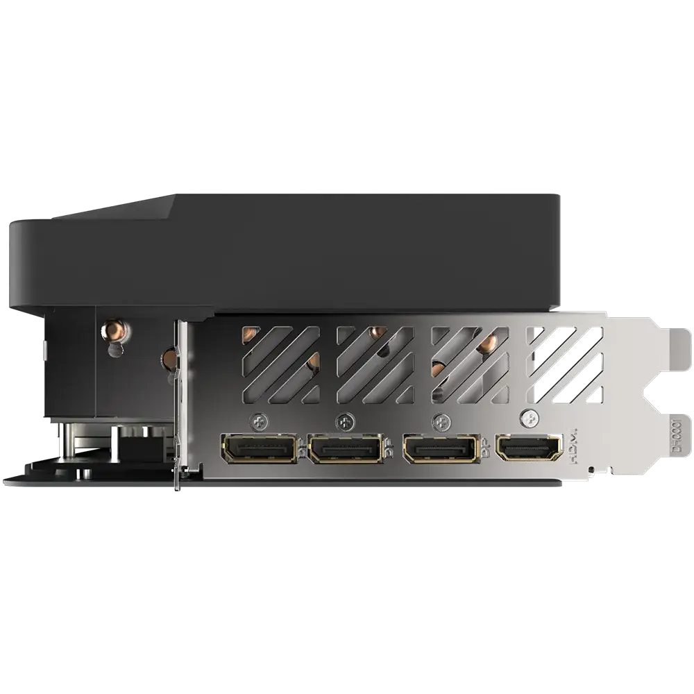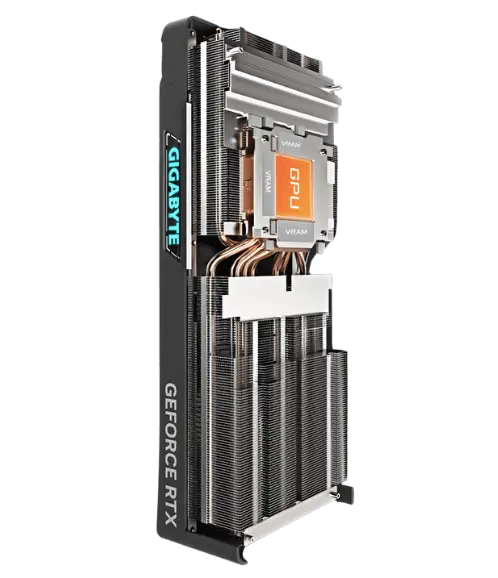 The large vapor chamber directly contacts the GPU, coupled with the composite heat pipes, which quickly transfers the heat of the GPU and VRAM to the heatsink.