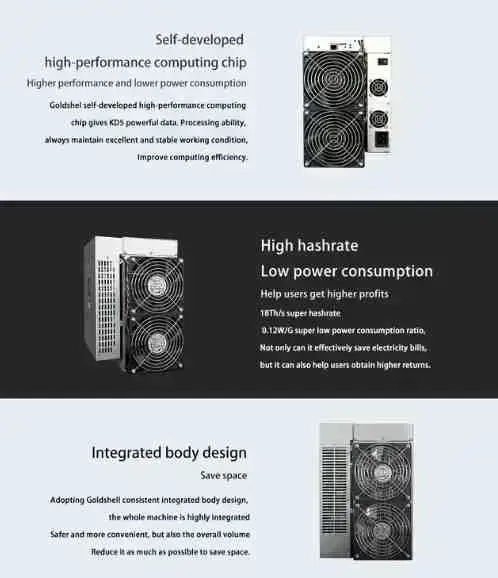 This mining rig delivers a robust hashrate of 18Th/s with a variance of ±15%. Operating at a noise level of ≤80dB, it maintains a relatively quiet environment. With compact dimensions of 264 x 200 x 290mm and a weight of 8.5KG, it offers ease of installation and portability. Powered by wall power, it ensures convenient operation. Its Ethernet connection facilitates seamless network integration. Operating efficiently within a temperature range of 0~35°C, this rig provides reliable performance in various environments.