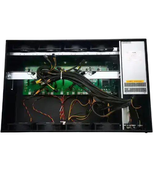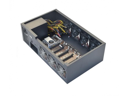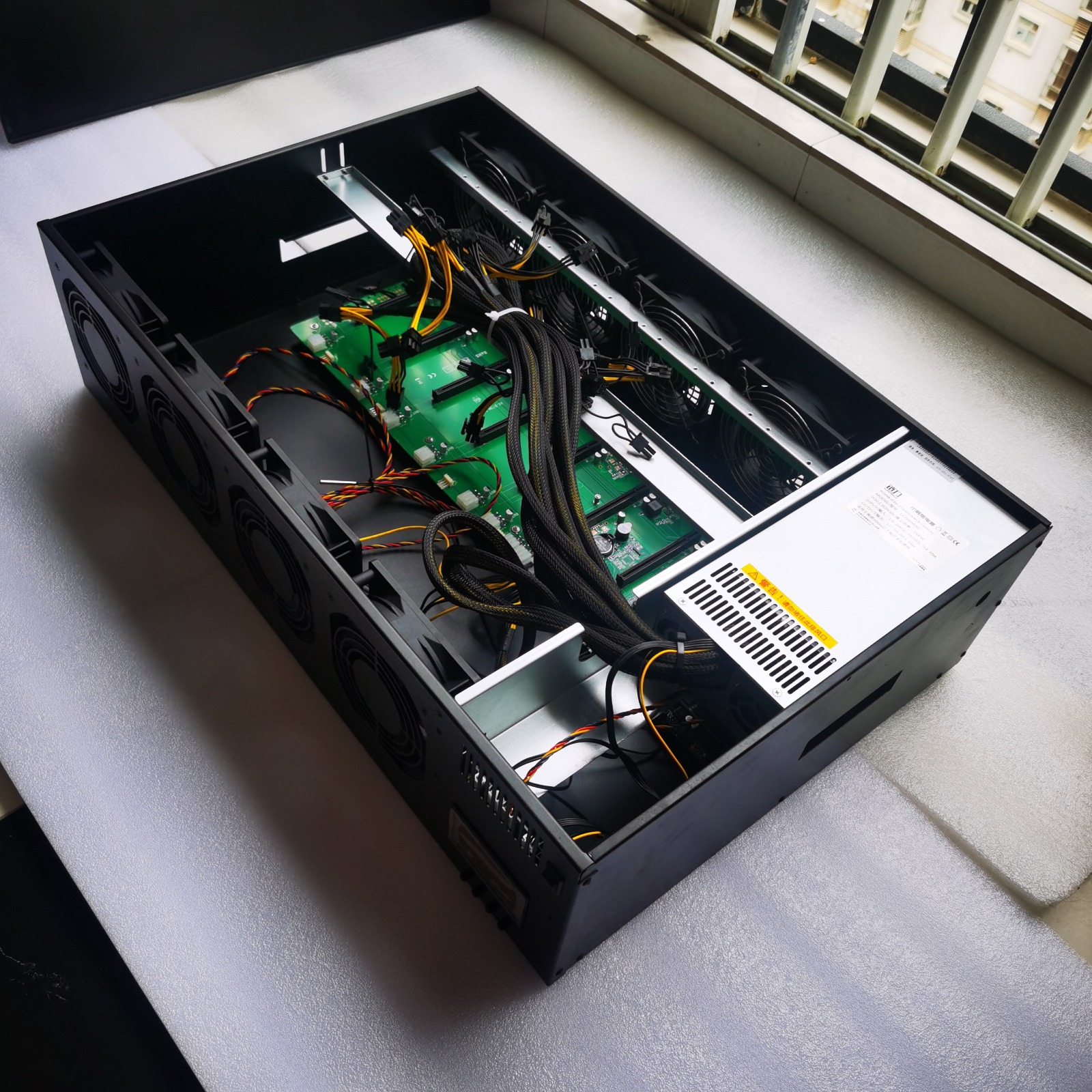 In the realm of cryptocurrency mining, the foundational components of a high-performance rig are paramount. The heart of such a setup lies in the motherboard, boasting 6-12 PCIe slots to accommodate multiple graphics cards efficiently. Paired with the Intel J1800 CPU, this rig ensures robust processing power for complex mining algorithms. Housed within a compact mining case measuring 444718CM, the rig maintains a streamlined profile while maximizing space for essential components. Keeping temperatures in check is a breeze with the inclusion of a standard fan equipped with three fan heatsinks. Powering the rig is a reliable standard 1650W PSU, ensuring stable operation under demanding workloads. With standard DDR3 RAM totaling 8GB and a high-speed Samsung 256GB SSD, this rig is equipped for seamless performance and efficient data storage. Notably, the graphics card is not included, providing flexibility for miners to choose the most suitable GPU configuration for their specific needs.
