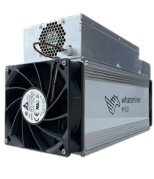 WhatsMiner M50 SHA-256 algorithm (Bitcoin) 110Th to 122Th Hashrate, 28W/Th Power Efficiency Air Cooled with Ethernet network connection.