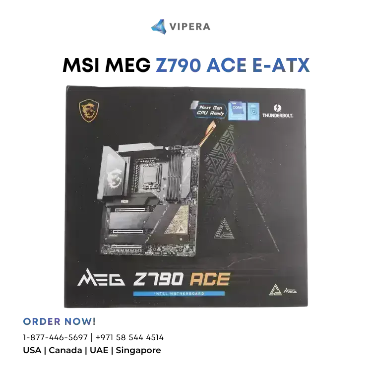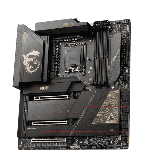 The MSI MEG Z790 ACE motherboard is designed to maximize the performance of Intel 14th, 13th, and 12th Gen processors with its robust 24+1+2 power phase design and dual CPU power connectors. It supports DDR5 memory up to 7800+MHz and features dual Thunderbolt 4 ports, dual 2.5G LAN, and the latest Wi-Fi 6E technology. The motherboard also includes five M.2 slots, PCIe 5.0 slots, and an advanced cooling solution with stacked fin arrays and direct touch heat pipes. Ideal for extreme gaming and overclocking, it combines premium aesthetics with unparalleled performance.