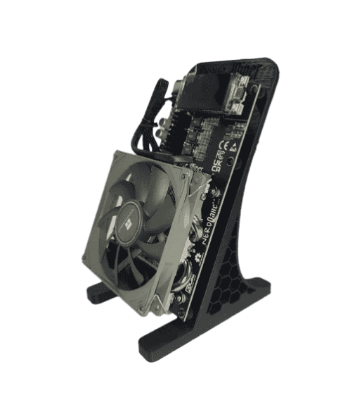 NerdMiner NerdQaxe++ mining the SHA 256 algorithm has a maximum hash rate of 4.8Th/s at a power consumption of 72W. Weighing only 0.4 kgs, NerdQaxe++ gives an excellent efficiency of 15j/Th. The recommended temperature for NerdQaxe++ is 5 – 40 °C and the humidity is 10 – 65 %.