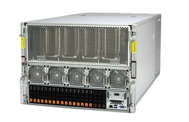 | Supermicro 8U 20 Bay GPU Server with Dual LGA 4677 | Featuring dual Intel Xeon Platinum 8480+ processors, 32 DIMMs for up to 2TB DDR5 memory, and 20x 2.5″ NVMe/SATA drive bays, this server offers unparalleled performance and expandability for high-performance computing applications. |