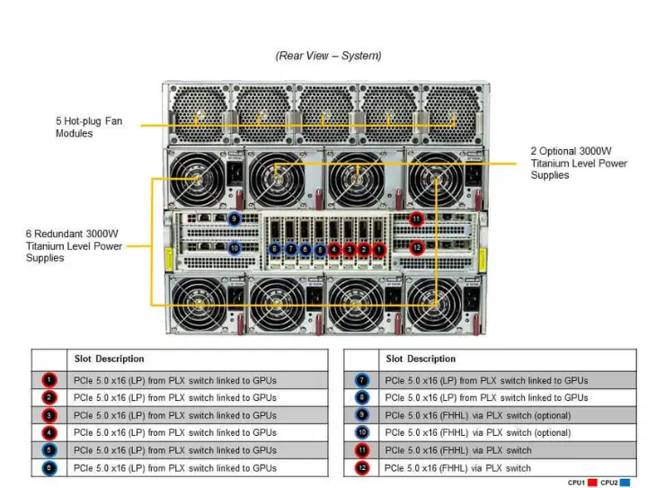 | Powerful Cooling and Expandability | Designed for optimal thermal performance with 10 heavy-duty fans and optional liquid cooling, this server ensures efficient heat dissipation. It also offers extensive expansion options with multiple PCIe slots and drive bays. |