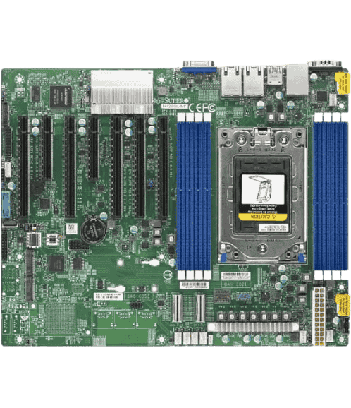 Single AMD EPYC™ 7003/7002 Series Processor (The latest AMD EPYC™ 7003 Series Processor with AMD 3D V-Cache™ Technology requires BIOS version 2.3 or newer) 2.2TB Registered ECC DDR4 3200MHz SDRAM in 8 DIMMs 3.Expansion slots: 5 PCI-E 4.0 x16 2 PCI-E 4.0 x8 M.2 Interface: 2 PCI-E 4.0 x4 M.2 Form Factor: 2280, 22110 M.2 Key: M-key 4.2 M.2, 2 SlimSAS x8 (each: 8 SATA3 or 2 NVMe) 5.Dual 10GBase-T LAN via Broadcom BCM57416 6.ASPEED AST2500 BMC graphics 7.Up to 6 USB 3.0 ports (4 rear + 2 via header) 8.7 PWM 4-pin Fans with tachometer status monitoring