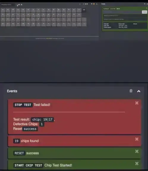 If you select the test with reset option, the reset will occur before each iteration of the polling of the chips and display the counter of successful and unsuccessful resets in the test log.